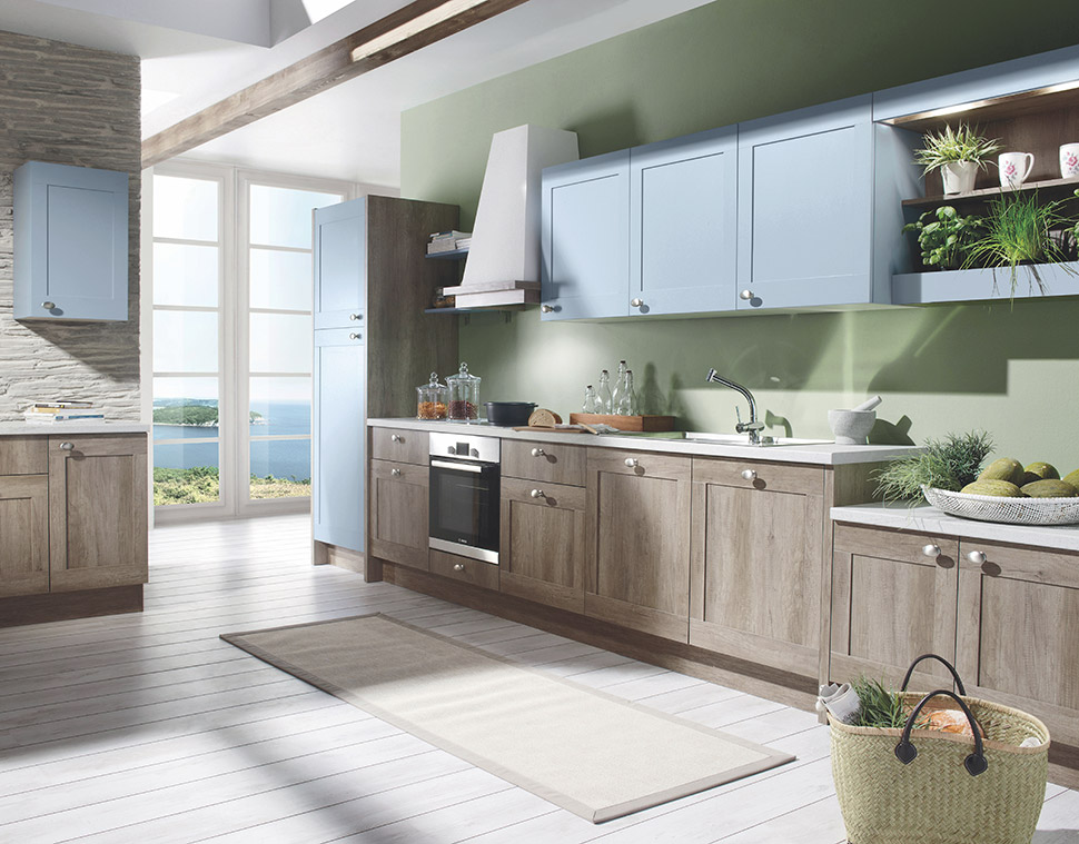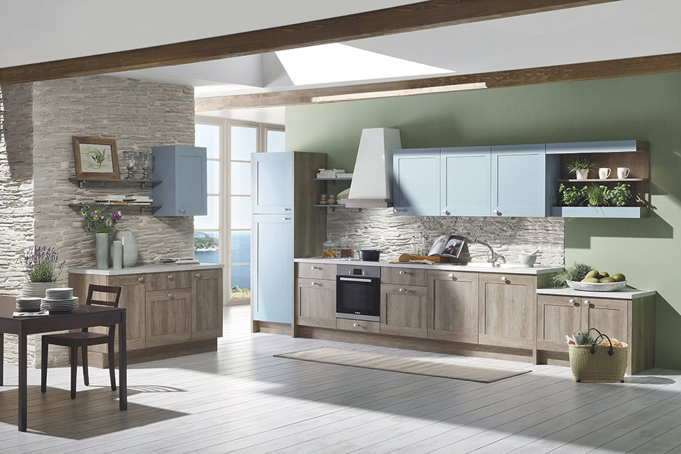 Kuhinja Laguna ima prester izbor materialov in barv in lahko vsakdo najde primerno kombinacijo v stilu podeželja. Z široko paleto dodatnih elementov lahko popestrite kuhinjo ali opremite dnevno sobo.