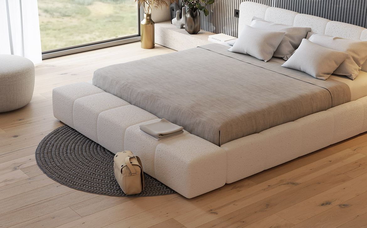 Posteljo Aura je mogoče izdelati v Plain izvedbi brez prešitja.