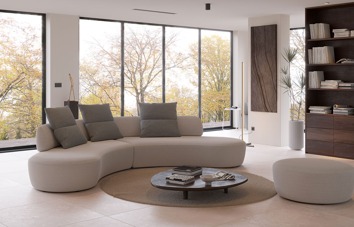 Zaobljena sedežna garnitura Sky SOFT je nam pričara oblak v naši dnevni sobi.