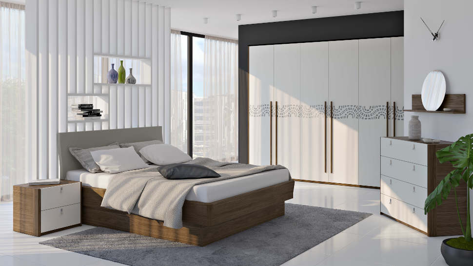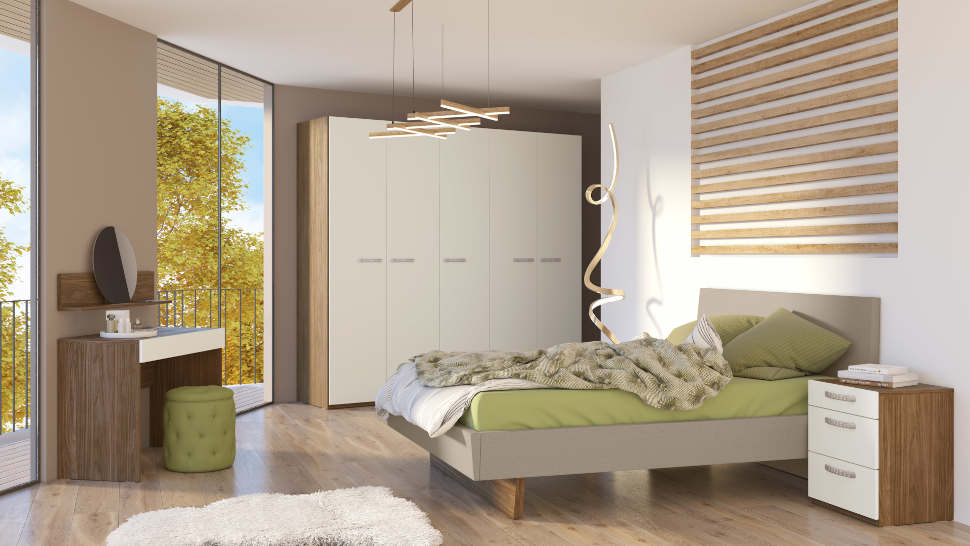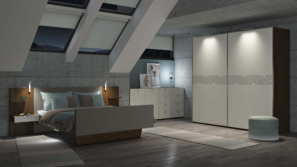 Arabeska je igrivost, dovršenost in eleganca. Spalnica Arabeska je prilagodljiva različnim prostorskim okvirom in stilom. Kombinacije preprostih ploskev, modnih poševnin in prijetnih oblin so lahko osvežujoče svetle, sproščujoče naravne, ali glamurozno šik.