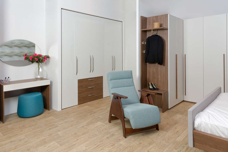 notranjosti garderobnih omar, front z mehkim zapiranjem, postelj in nizkih elementov